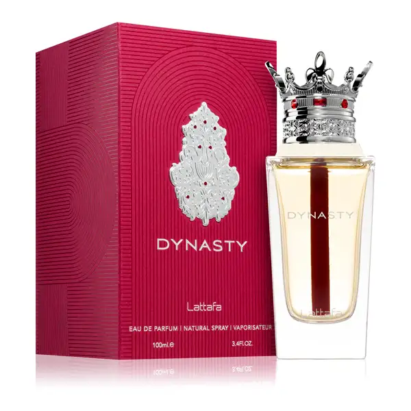 Dynasty de Lattafa est une création boisée et épicée, conçue aussi bien pour l’homme que pour la femme. Lancé en 2025, ce parfum signé par le nez Alex Lee se distingue par une composition moderne et raffinée. Il s’ouvre sur un éclat de bergamote, de gingembre, de framboise, relevés par la sauge sclarée et la chaleur de la noix de muscade. Le cœur révèle une alliance singulière de thé rouge (Rooibos) et de daim, apportant profondeur et élégance. Enfin, le sillage s’installe dans la douceur boisée du cachemire, la puissance lumineuse de l’amberwood et la noblesse du cèdre.